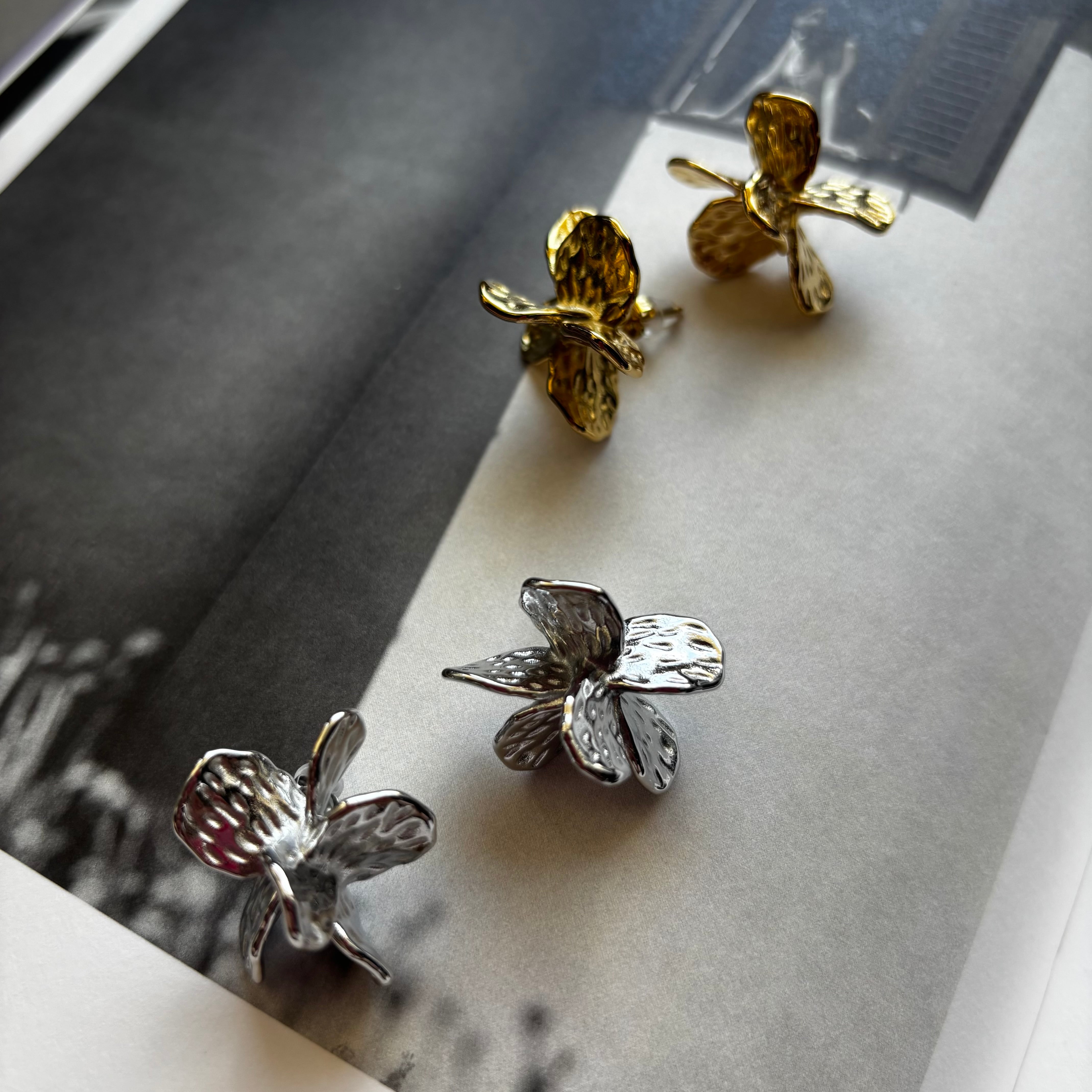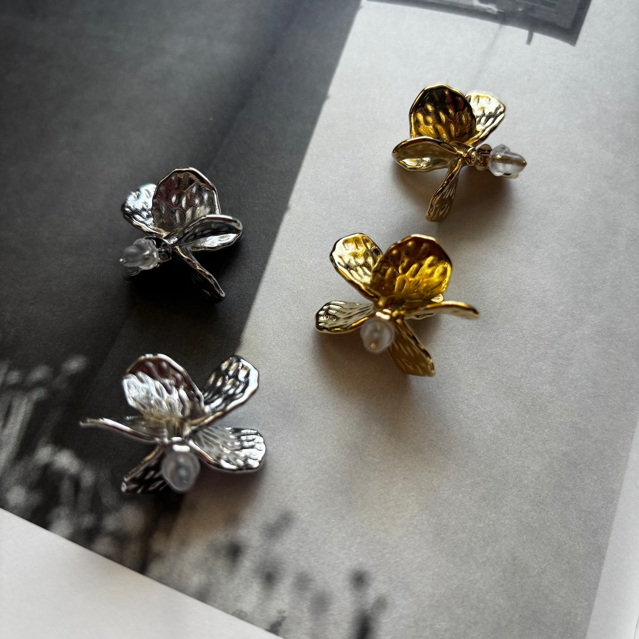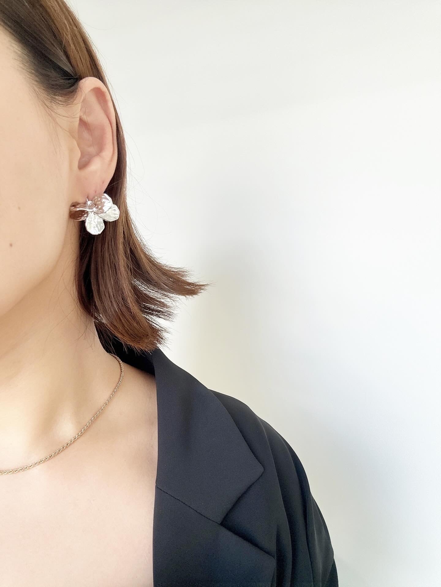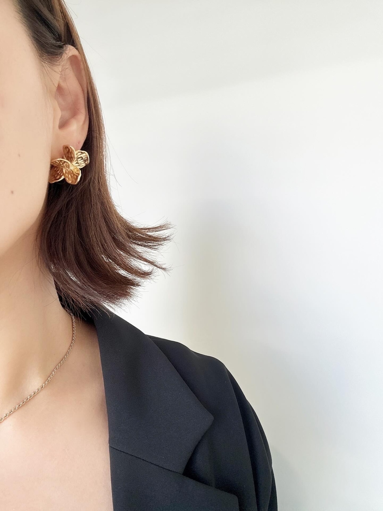独自のデザインが耳元で立体的に花を咲かせ、華やかさと洗練さを演出します。普段使いから特別な日のお出かけまで、自在にスタイルを引き立てるアイテムです。
