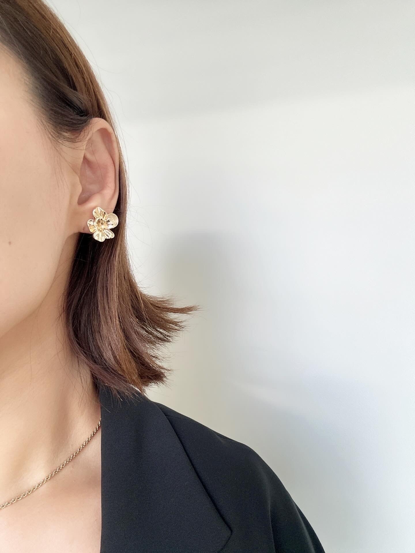 洗練されたフラワーデザインが耳元を美しく彩り、あなたのスタイルを引き立てます。カジュアルな日常から特別な日のお出かけまで、様々なシーンで活躍するアイテムです。