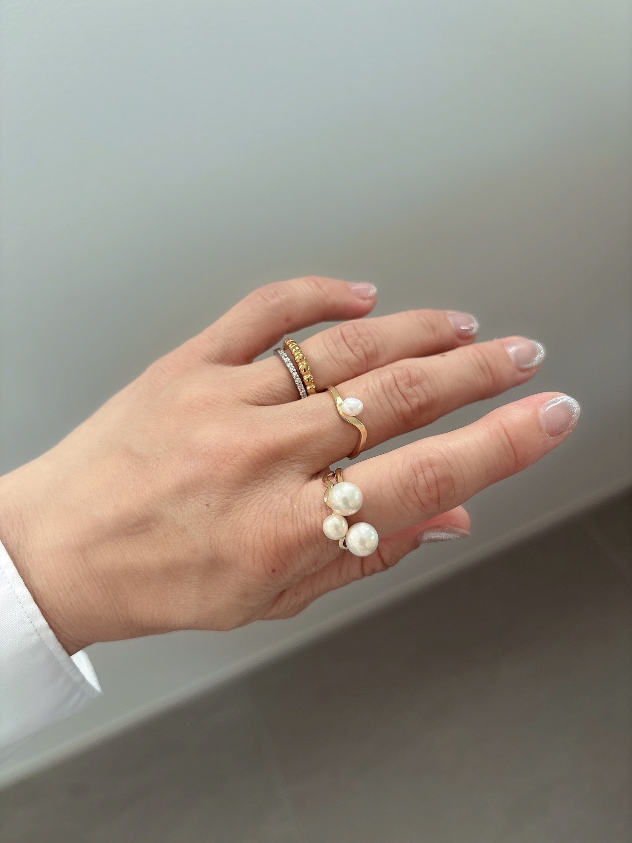シンプルでありながらも洗練されたパールの美しさが、指元を優雅に演出します。どんなスタイルにもマッチし、特別な日のお出かけはもちろん、日常使いにも最適なアイテムです。