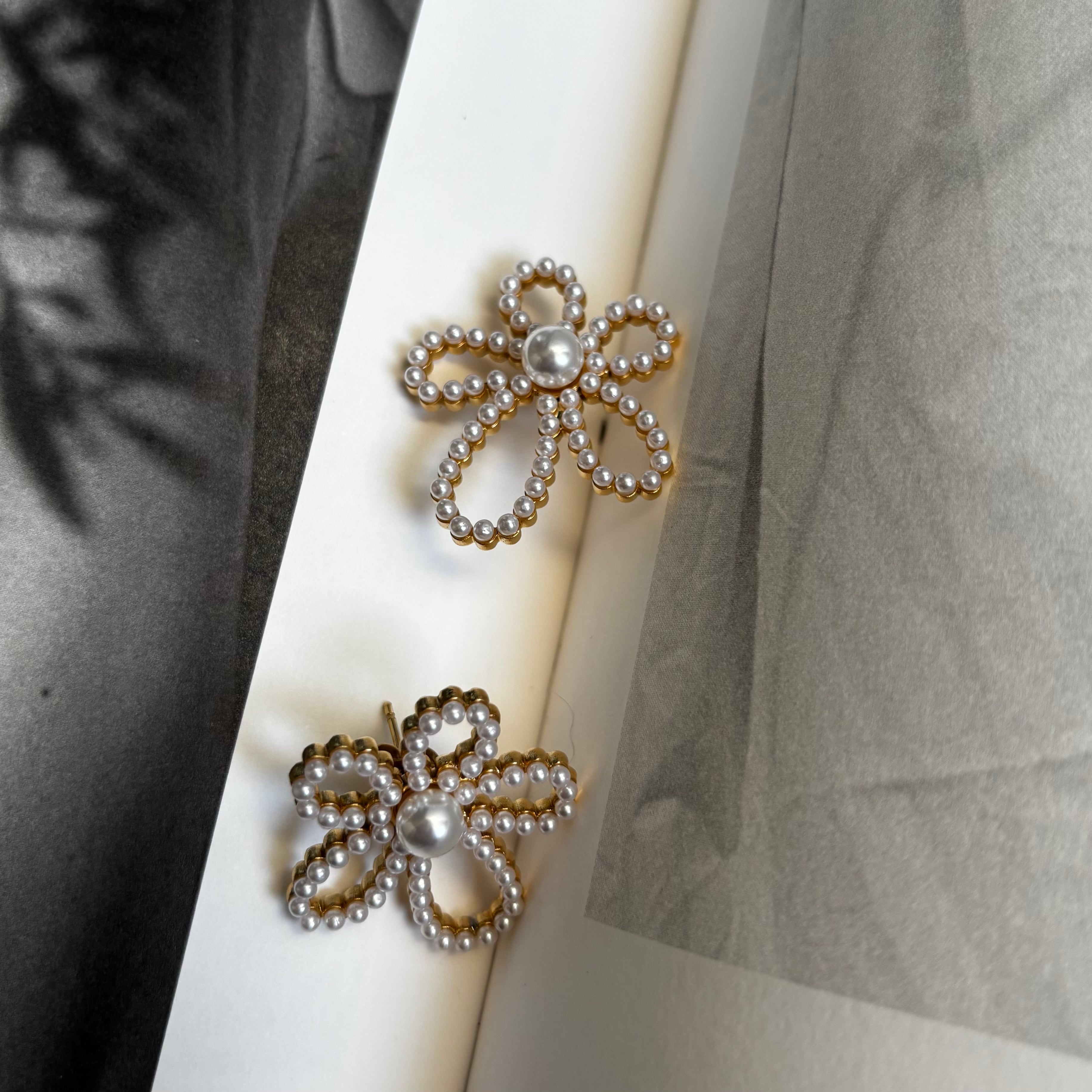 Flower motif pearl pierce