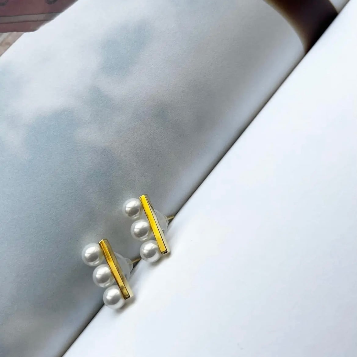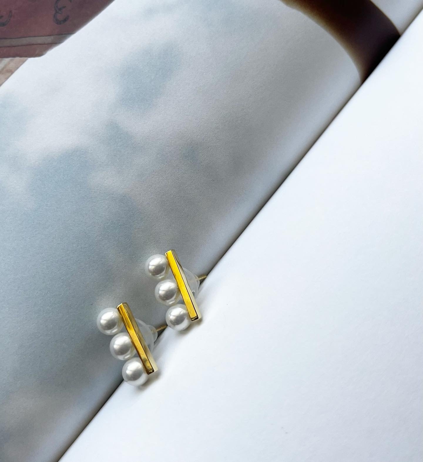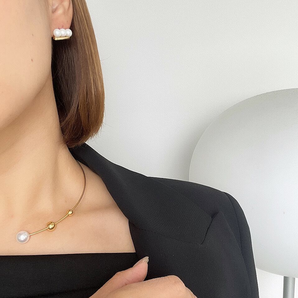 3つに並んだパールモチーフとエッジの効いたゴールドバーがスタイリッシュ