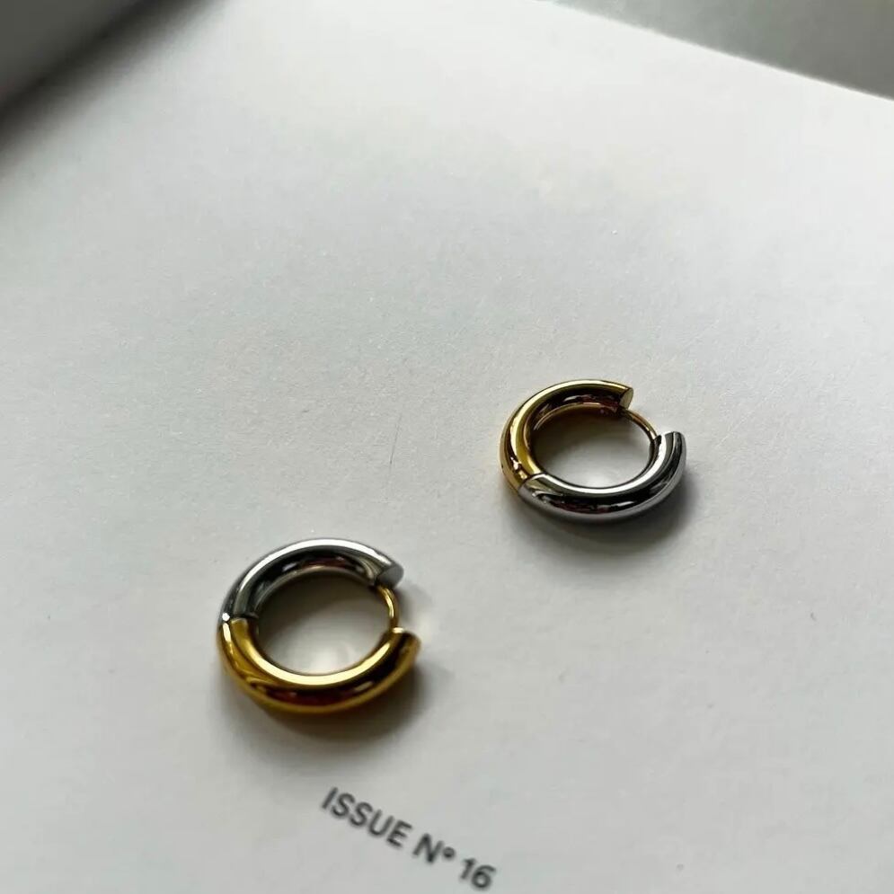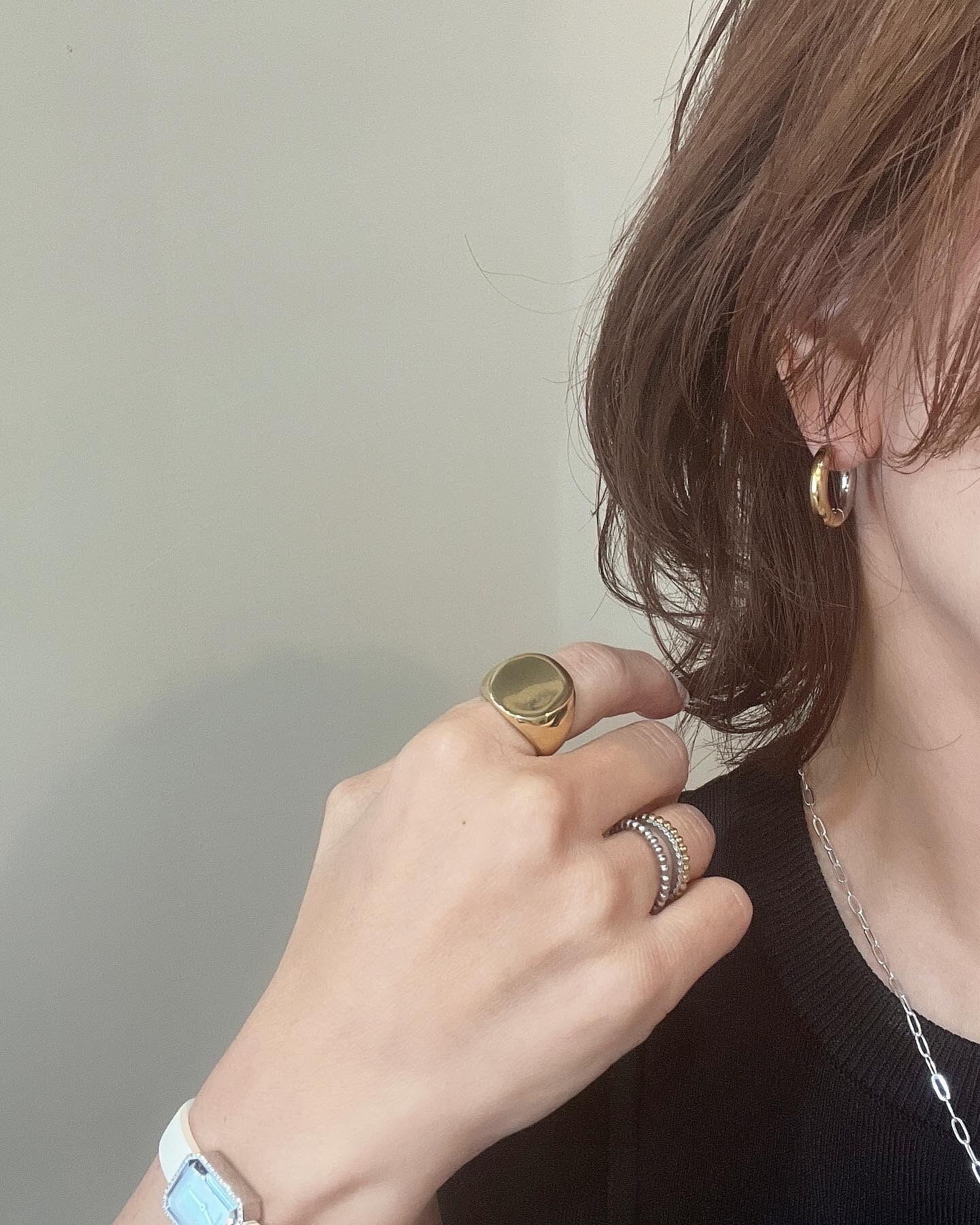 シルバーとゴールドのトレンドのバイカラー配色がスタイリングのアクセントに。